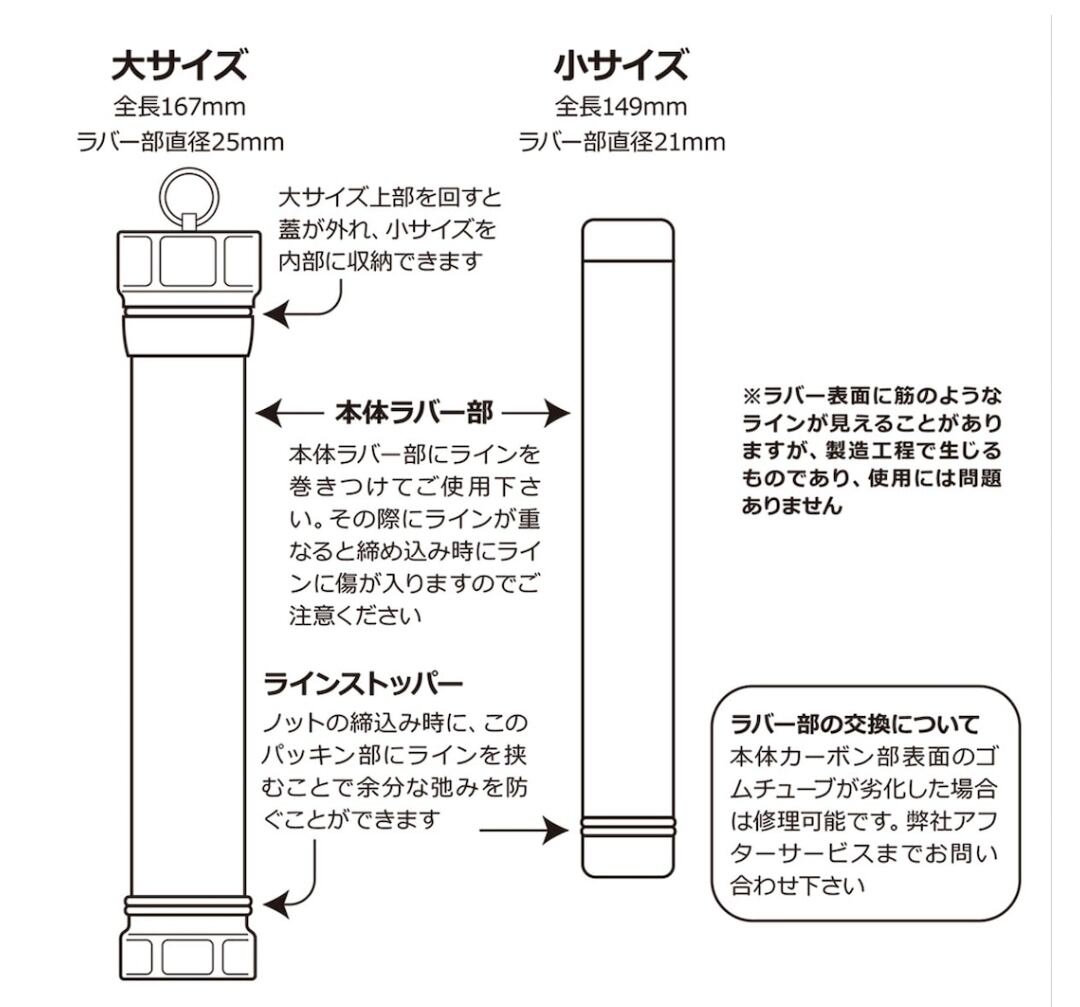 大・小共にOリングに挟むラインストッパーも装備。